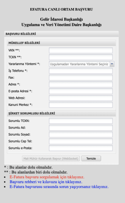Karşınıza çıkan formdaki “mükellef bilgileri” ve “şirket sorumlu bilgileri” kapsayan başlıkları girmeliler.