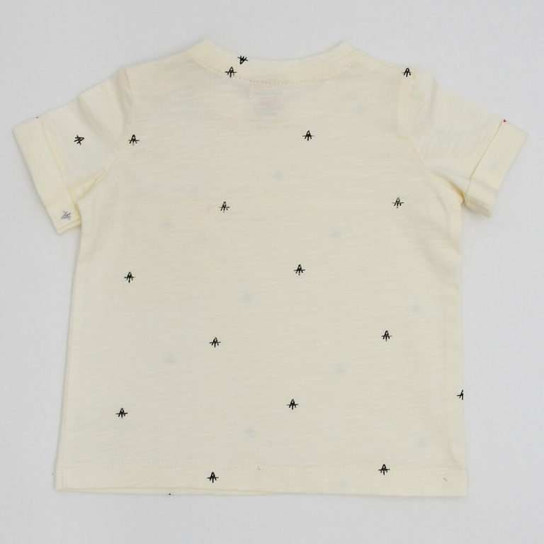 Kıvırmalı Kısa Kollu Kollu Bisiklet yakalı Krem Renk Üzeri A baskılı Robadan Ekli Cepte Kırmızı Renk Punteriz Dikişli likralı suprem ense Temizleme Biyeli Ahşap düğme Detaylı Erkek Çocuk Thşirt
