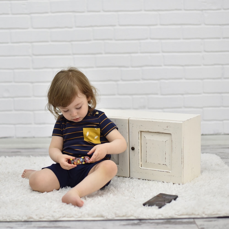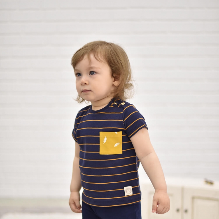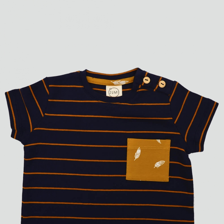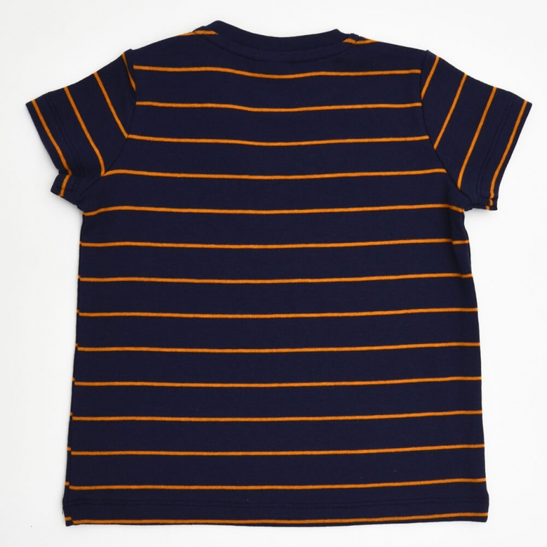 Erkek Çocuk Lacivert Zemin Hardal Çizgili Tüy Desen Cep Baskılı Likralı Suprem Thşirt