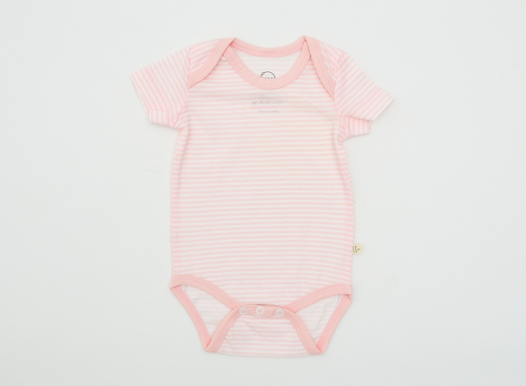 | Kısa Kollu, Bisiklet Yaka ve Alt Kısmı Çıtçıt Kapama Detaylı Pembe Çizgili Likralı Süprem Pamuklu Kız Bebek Body |