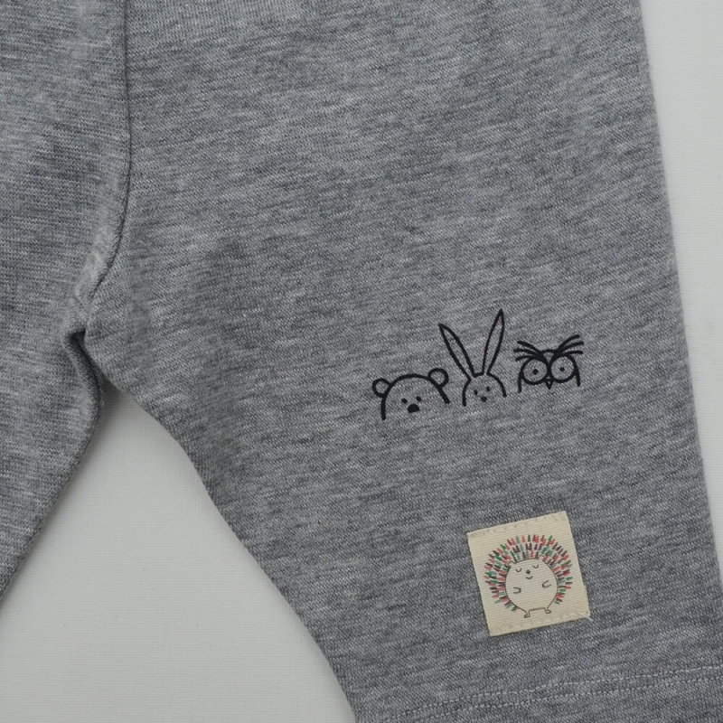 Kız çocuk gri renk tavşan panda ve kuş baskı detaylı likralı süprem pamuklu bermuda bisikletçi taytı basic diz üstü tayt