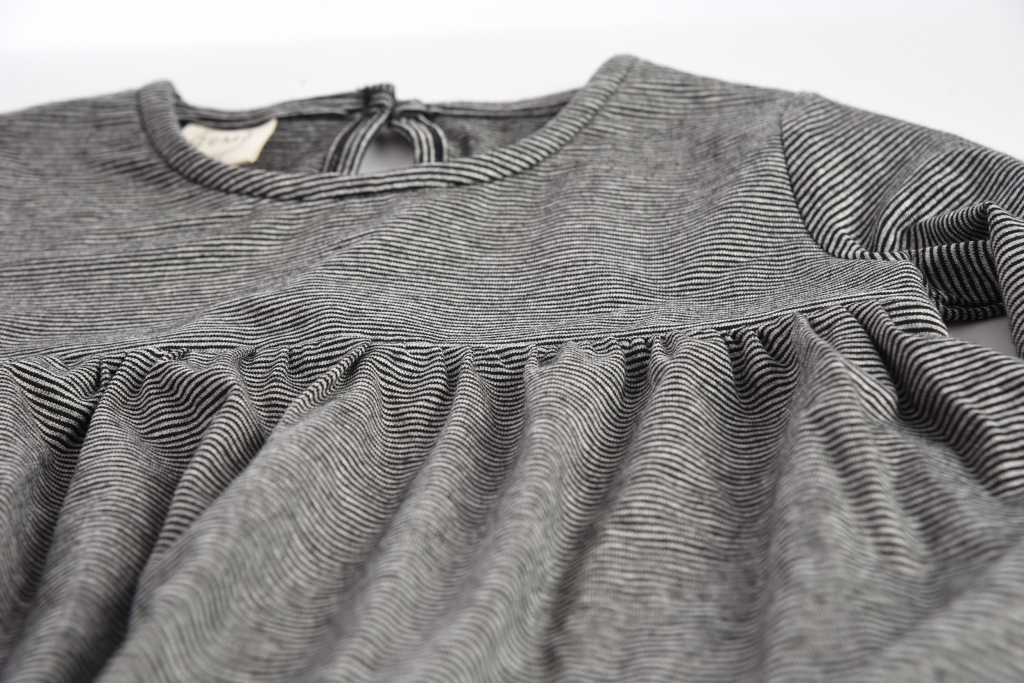 Uzun Kollu, Koyu Gri Renk Çizgili , Robalı, Likralı Süprem Pamuklu Kumaş, kız çocuk Sweatshirt