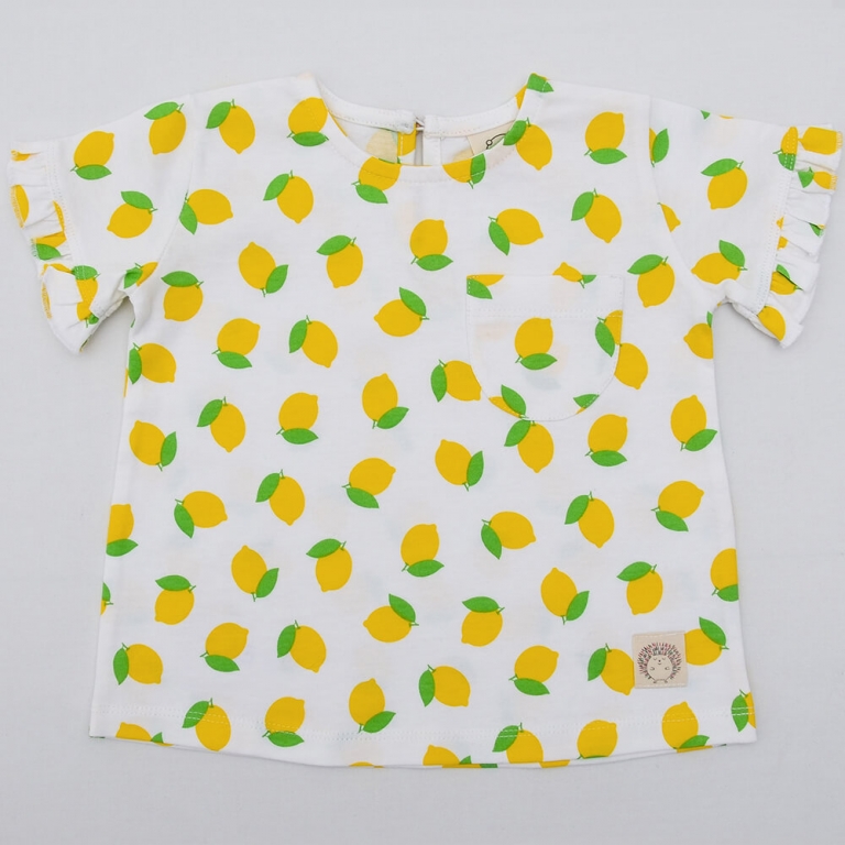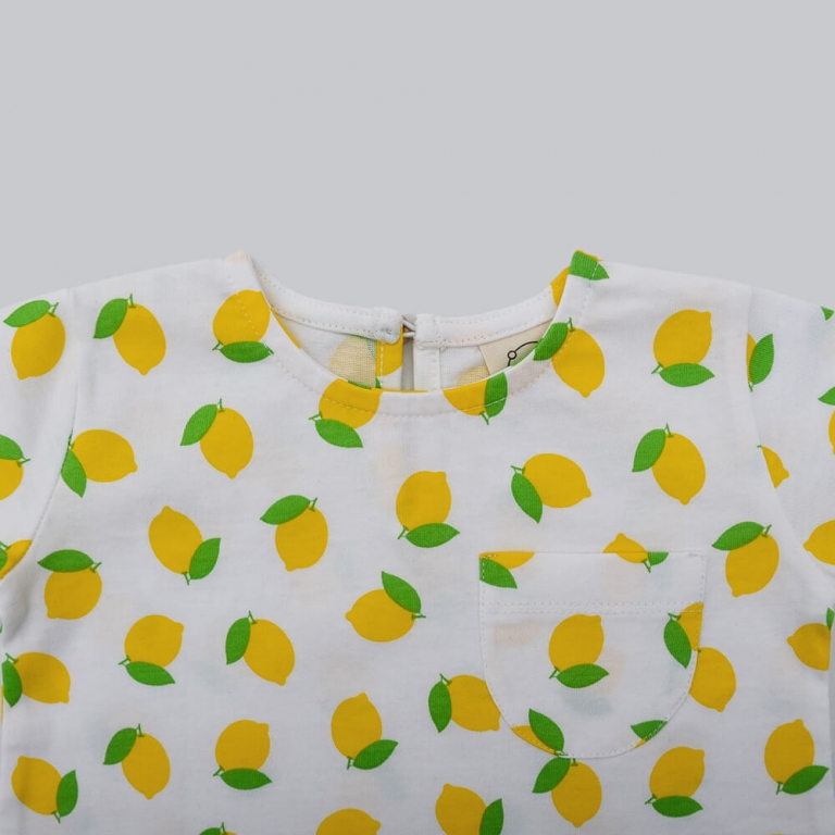 Kız Çocuk Beyaz Renk Üzerine Limon Baskı Desenli Likralı Süprem T-Shirt
