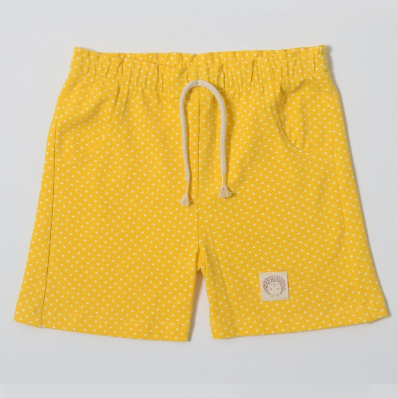 Regular, Basic , Elastik Belli , Sarı Üzerine Beyaz Puanlı, Ham Renk Kordon Ucuna Sarı Renk Uçlama Detaylı, Likralı Süprem Kız Çocuk Şort