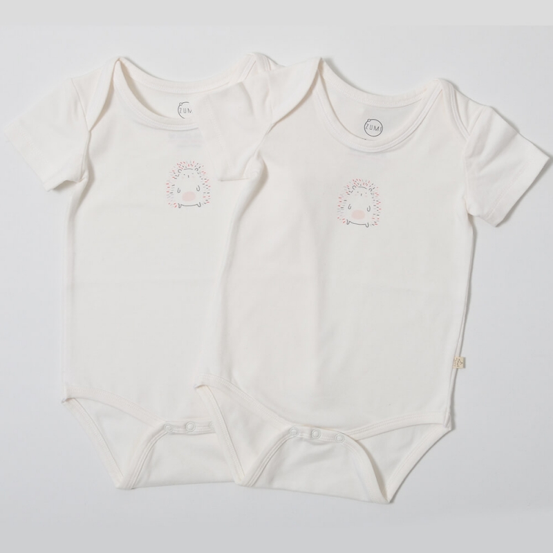 Krem Renk Pembe Kirpi Baskılı Body 2' Li Set