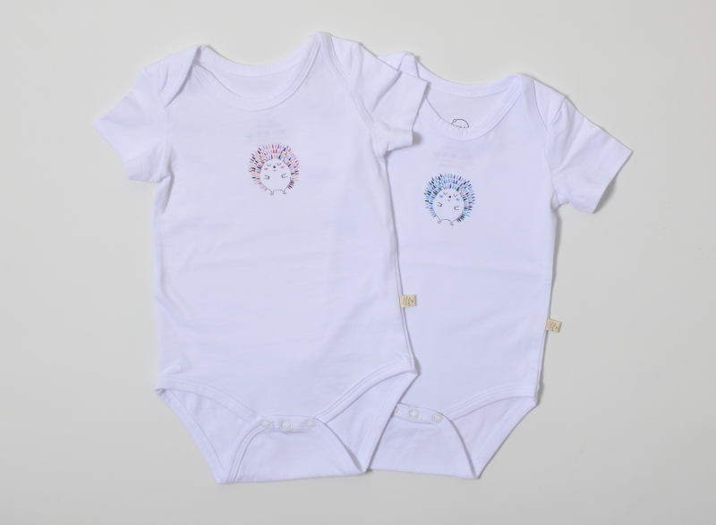 Unisex Beyaz Üzerine Mavi Ve Pembe Kirpi Baskılı Body Set 2'Li
