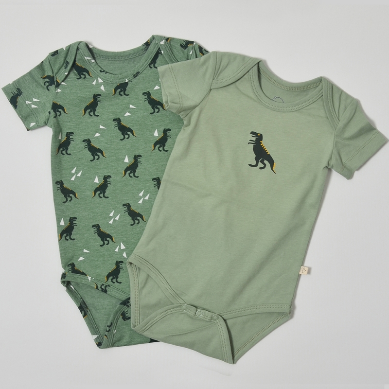 ERKEK BEBEK YEŞİL RENK ÖNÜ DİNOZOR BASKILI BODY 2'Lİ SET