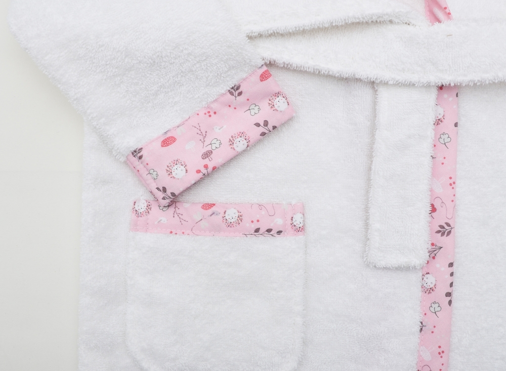 Kız Çocuk Beyaz Bukle Pembe Kirpi Baskı Desen Biyeli Kapşonlu Bornoz