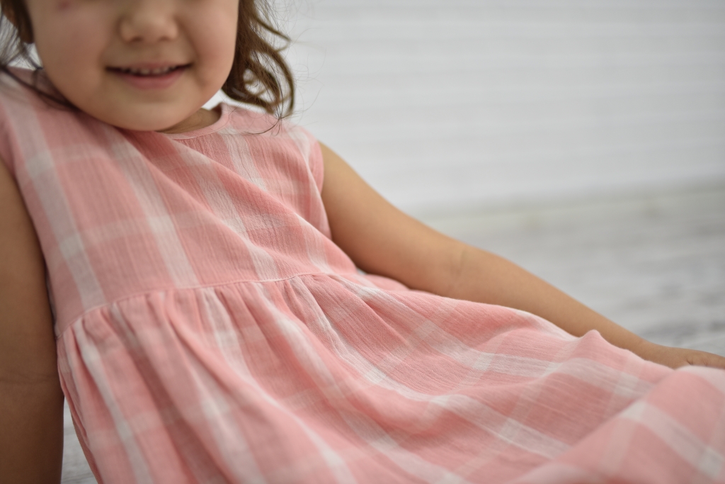 Kız Çocuk Pembe Renk Keten Karışımlı Nakışlı Astarlı Elbise